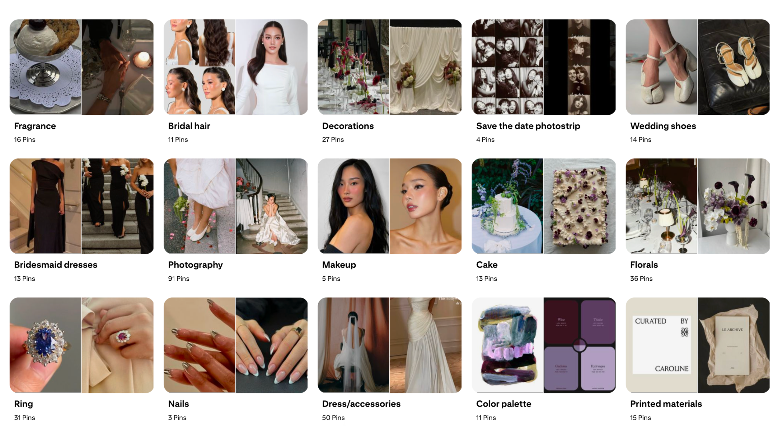 Since weddings have so many elements, I collected as much reference as I could in all of the categories I’d need to consider. Luckily I’ve been thinking about my wedding since I was probably fourteen and I had a pretty clear creative vision.