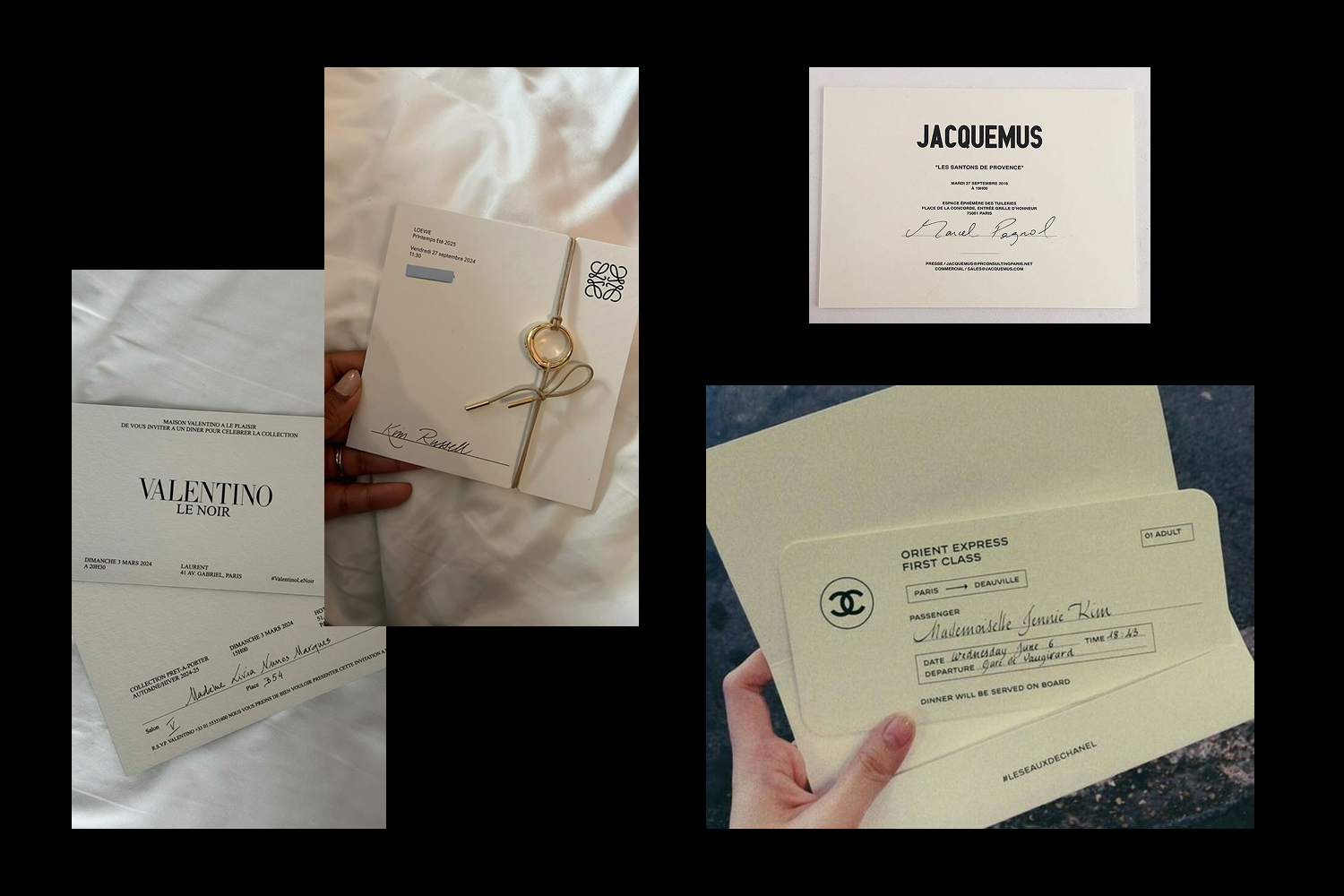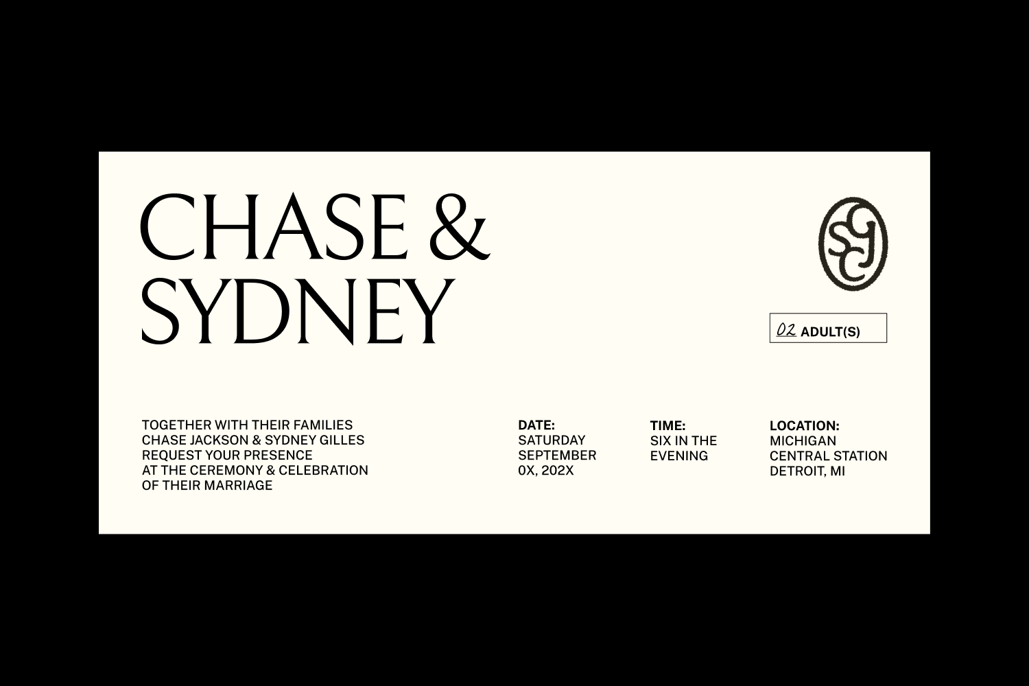 The wedding venue is a historical train station in Downtown Detroit, MI. I was inspired by train tickets, boarding passes and other travel related documents. I love the tight grid and small bits of information that they hold. I also pinned a Chanel Fashion Week invitation that was inspired by a ticket that really informed my design. It felt like the perfect combination of transportation and luxury that I was going for. I referenced other Fashion Week invitations, specifically searching for white space and monogram usage inspiration.