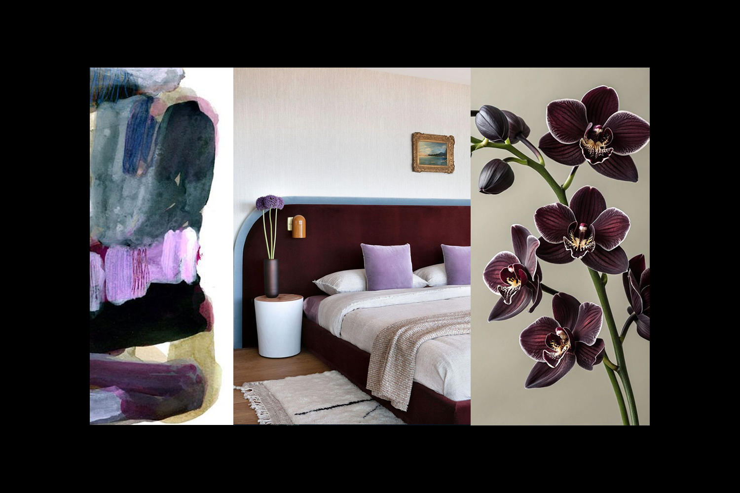 Both my Fiancé and I wear mostly black and like to keep things monochrome. The base of all creative will be black and white, with color almost exclusively coming through in florals. Purple is my favorite color, so that was a no brainer, but I was careful to balance warm and cool hues.